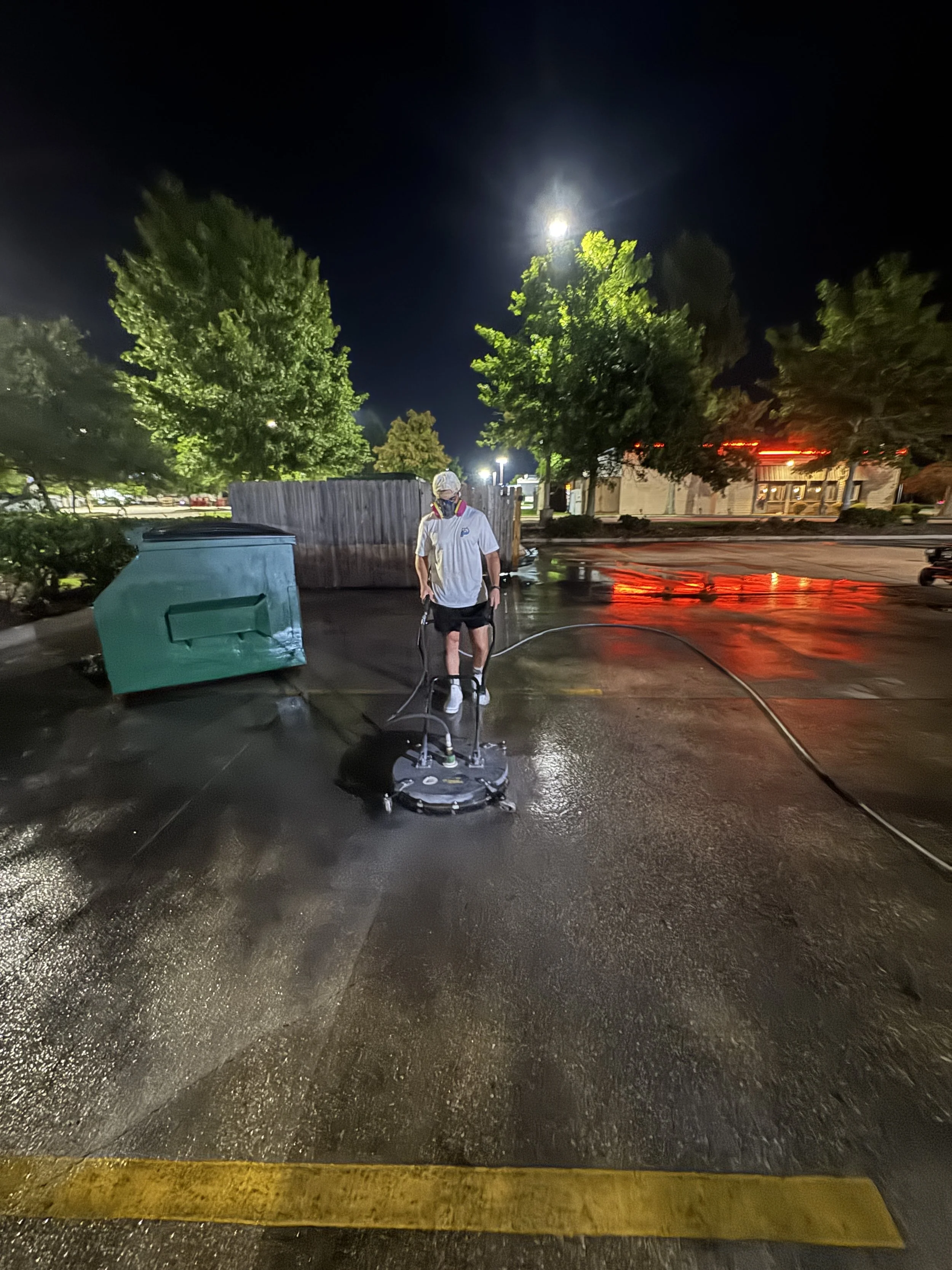 Do you use one of those circle things? Haha, yes we do! It is called a surface cleaner and it helps us quickly and efficiently clean surfaces. The one we use is two feet in diameter!